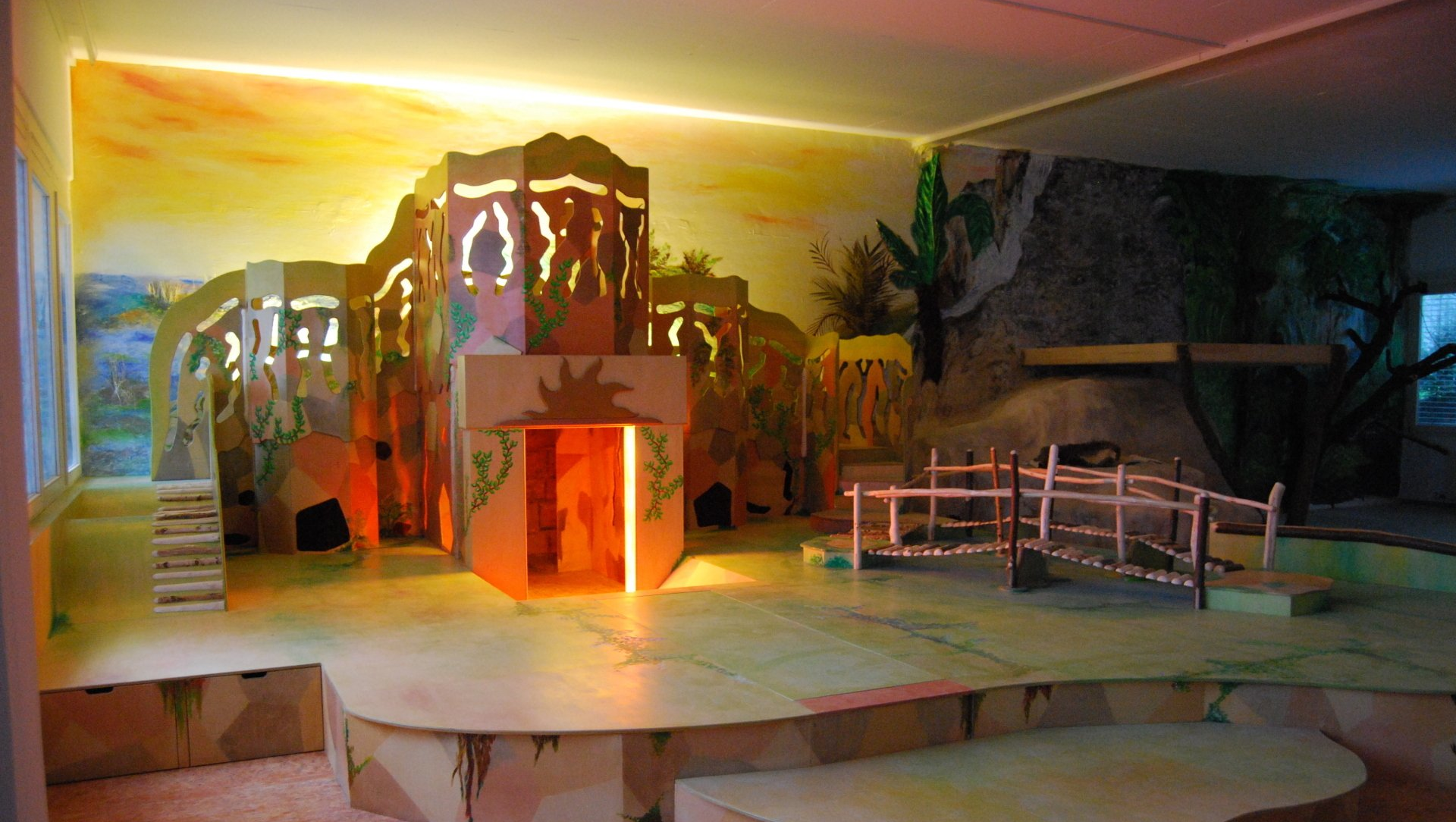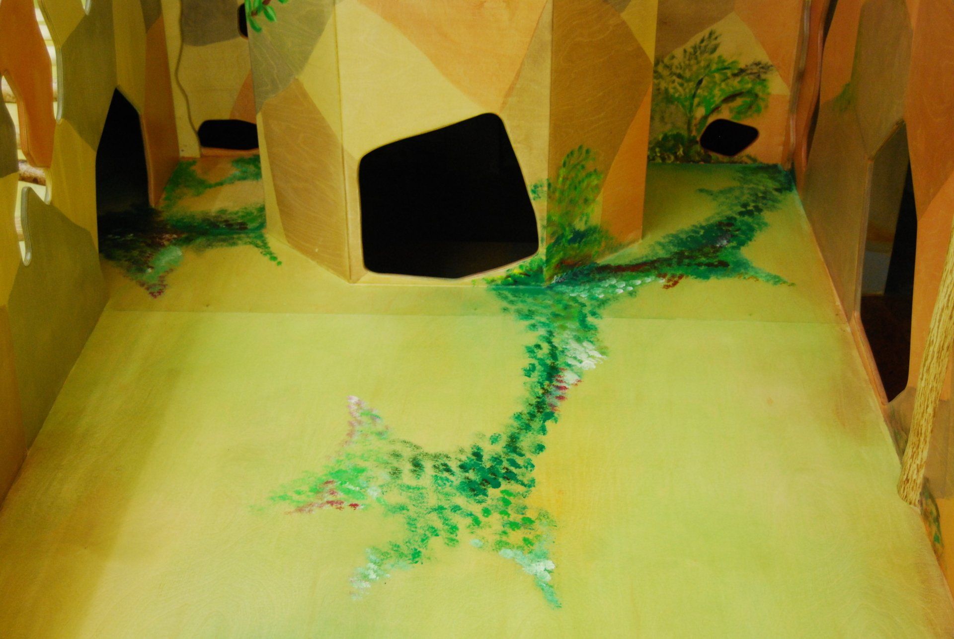 Bewegen und klettern über verschiedene Geländearten und sich dann mit Kissen und Decke in einer Höhle einkuscheln, der kindlichen Phantasie freien Lauf lassen.