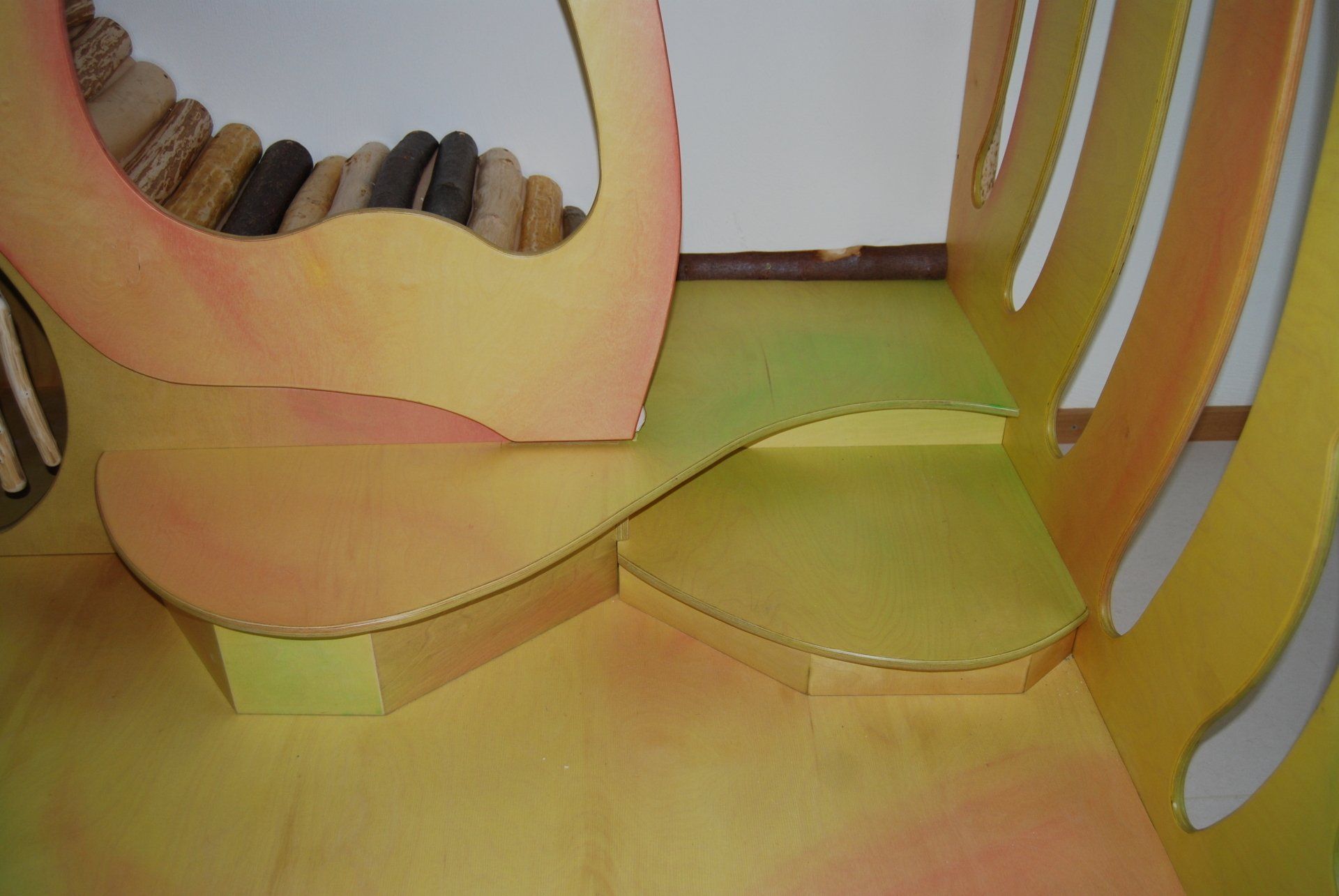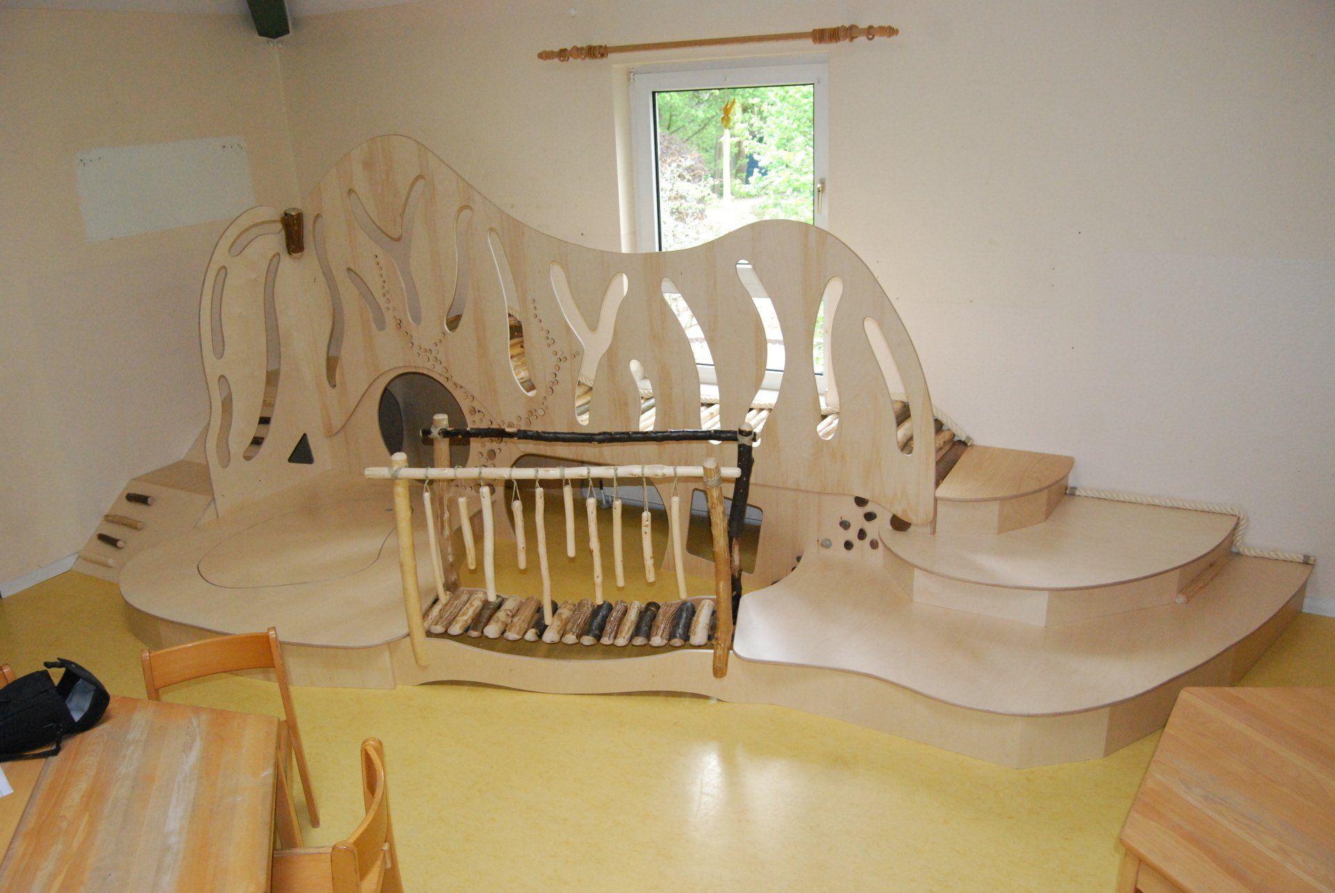 Diese Kunstobjekte bieten nicht nur die Möglichkeit Körperbeherrschung und Motorik im natürlichen Bewegungsdrang zu üben, sie setzen auch einen dringend notwendigen organischen Kontrast zu den immer rechtwinkligeren, schuhschachtelartigen Gebäuden die wir Kindergarten nennen.